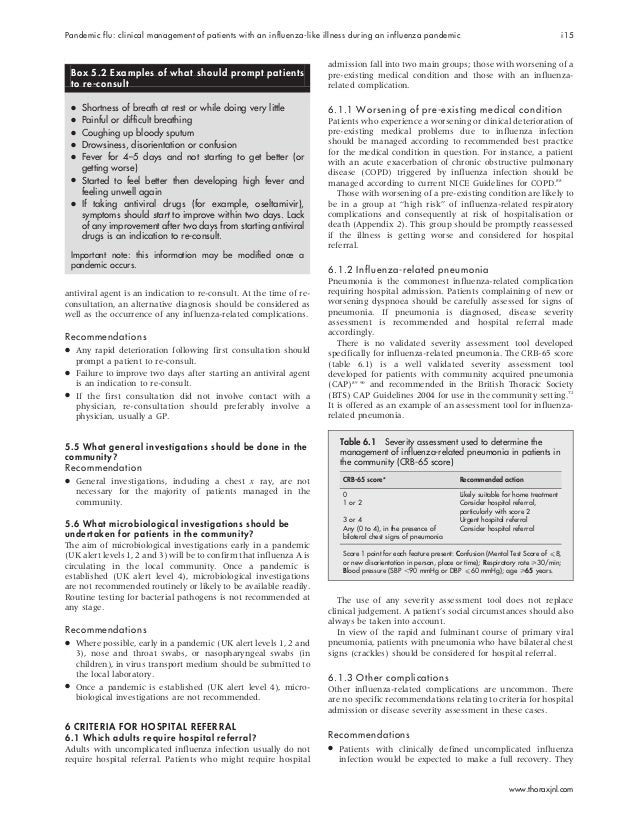 Pandemic Flu Clinical Management Of Patients Lim Thorax 2007